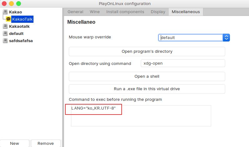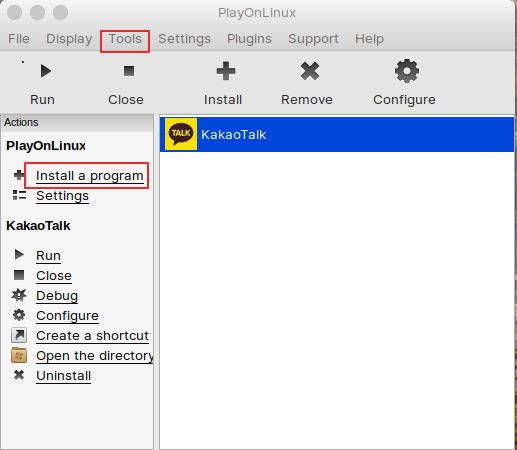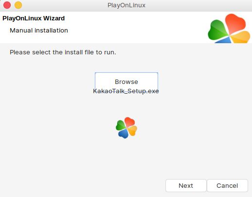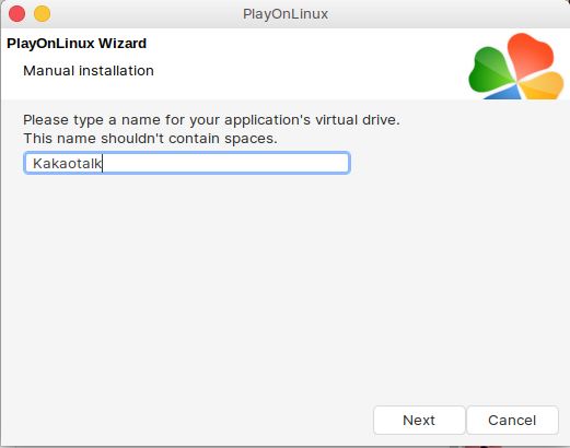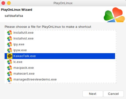 오른쪽에 설치할때 쓴 드라이브를 선택해서 “Make a new shortcut from this virtual drive”를 누르시고Kakaotalk.exe를 선택하시면 끝납니다.