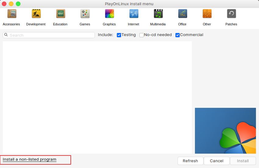 자 그럼 설치가 되었으니 간단 playonlinux 를 터미널로 쳐보시면 창이 하나가 뜹니다.