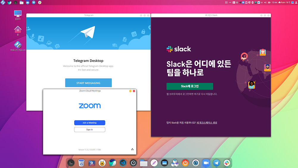 - – 언택트 시대의 PC 사용을 위한 Zoom, Slack, Telegram, Discord, Skype 등 제공