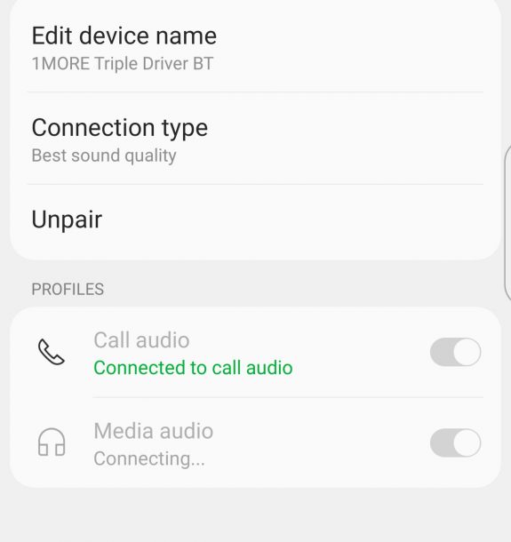 그렇게 블루투스를 끄면 "Paring..." 이라는 여성 목소리와 함게 불이 빨갛게 점열을 하는데, 블루투스를 키고 1MORE Triple Driver BT를 눌러주면 그때서야 LDAC 연결됬다는 문구와 함께 미디어도 연결되 노래를 들을 수 있었다.
