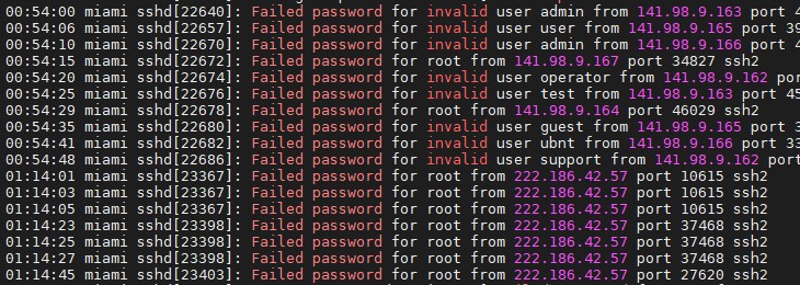$ sudo grep "Failed password" /var/log/auth.log | grep -v COMMAND | awk '{print $9}' | sort | uniq -c