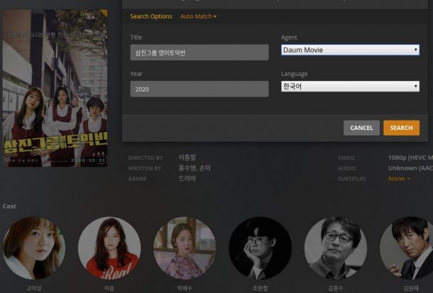 플렉스에서 기본 제공 하는 에이전트는 검색이 생각보다 느린데다가 한국제목과 영어제목이 너무 다른 영화 같은경우는 매칭하기도 힘듭니다.